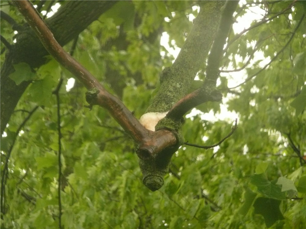 I just looked out my bedroom window and did a double take. Is our tulip poplar getting its wisdom teeth? It looks like a molar is growing out of this dead tree branch.