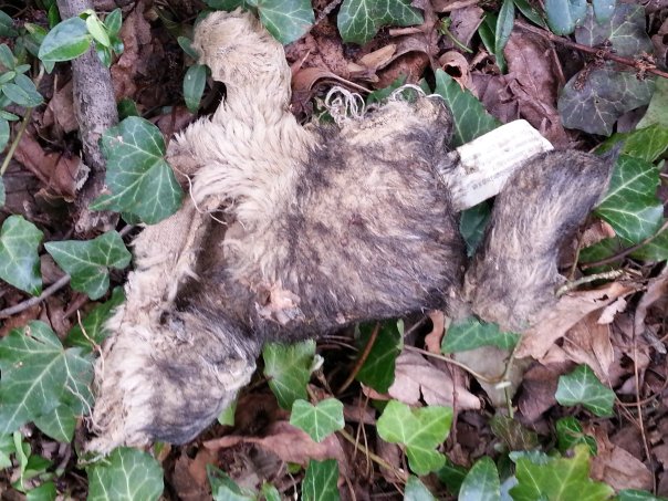 It was hard to turn the dead kitten over with the small stick, but I persevered and that’s when I saw the tag. It was a stuffed animal. Not a kitten. Or rabbit. Or rat. Actually I think it was a wolf.