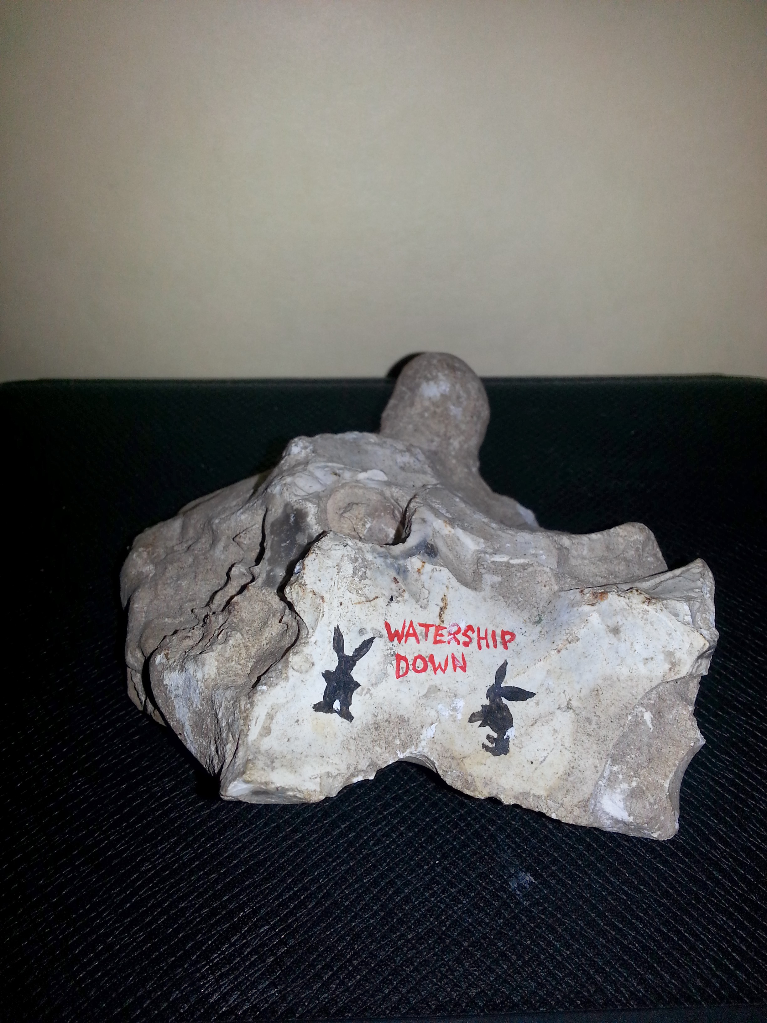 Later that day, after doing the dishes and eventually cooling down, feeling guilty as a result of my dreadful scene, I removed the figure from the box and once more unwrapped it. Tears stung my eyes as I recalled how terribly I had acted. I hadn’t even thought of the love that had been sent with the gift. The figure, which I had neglected to even admire before, was of two small rabbits cuddled under a black and white polka-dot quilt. One rabbit was soundly asleep, while the other had one eye open, looking at its partner. A black cat was curled behind the knees of the sleeping bunny — just where my black cat sleeps. The chips, less serious than I had previously thought, were on the same side, but at opposite corners. Part of the fluffy blue pillow and a whole bedpost was missing. Luckily there was plaster of various colors, shapes and sizes at the bottom of the box. Without further thought I found my Elmer’s Glue, plaster filler and watercolors and set to work to restore my birthday present.