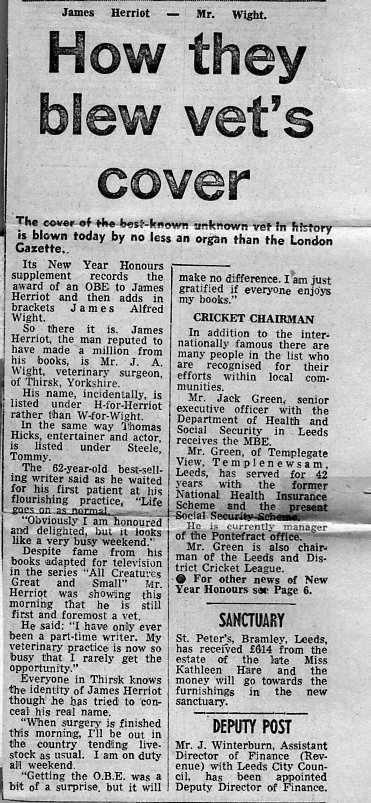 This is not the first time I have scoured a map to find a location from a fictional source. In fact the first time I did it was after reading the All Creatures Great and Small series. Because I’d spent some wonderful weeks in Yorkshire and the All Creatures Great and Small series took place in Yorkshire, I wondered if I may have been in the town where it took place or even crossed paths with the author. I asked Jack Burgoyne, my boyfriend’s father and a librarian, if he knew where the books took place but he didn’t know — however he did know that James Herriot was a pseudonym and Darrowby, England was not a real place. When I returned to the United States after visiting Jeremy and his family, I pulled out a map of England and noted the real places mentioned in the books (which, when I search the book now, not many other than Leeds and York are mentioned) and tried to figure out where “Darrowby” was. I was never successful, but the search was fun. The last time I visited the Burgyones as Jeremy’s girlfriend, Jack alerted me to an article in the newspaper about James Harriot, aka James Alfred Wight. It seemed that he’d been awarded the OBE and the London Gazette gave away his real name and the Evening Post (Leeds?) gave more away stating — the town was Thirsk, in North Yorkshire. I now knew that I’d never been to the town where the books took place nor was it likely I’d crossed paths with the author.