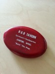 Among the things I found in my Mom’s attic was an old, barely used squeeze coin purse. It was not one of dads, or maybe it was a spare. It is stiff and slightly cracked — probably because it was exposed to heat and cold in the kneewall, but also because it has to be at close to 40 years old. I know this because on the back is an advertisement for the B&B Tavern in Chetek, Wisconsin and my folks stopped going to Chetek for vacations in the mid-1970s when they bought their own property on the other side of the state.