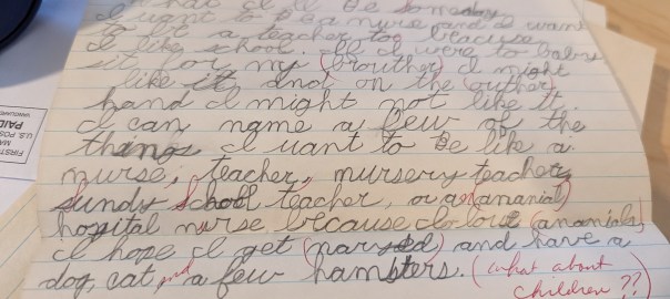 I can name a few of the things I want to be, like a nurse, teacher, nursery teacher, Sunday school teacher or an animal hospital nurse because I love animals.