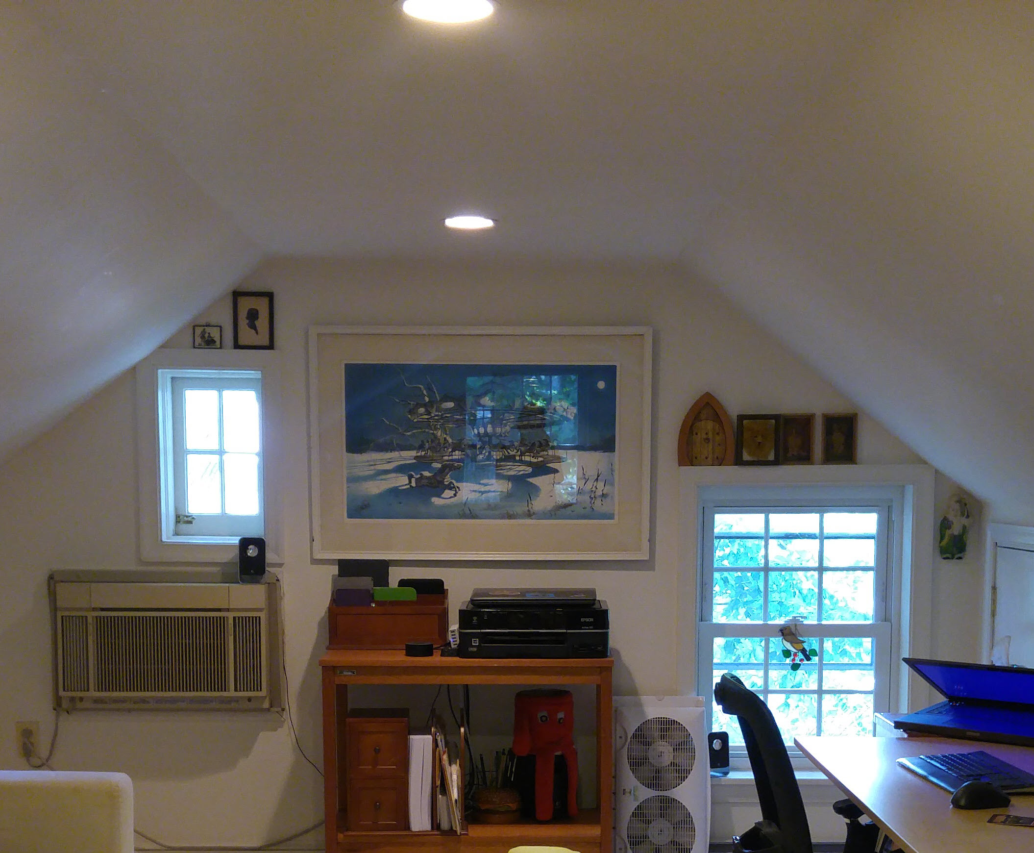 Once I established my attic office the painting was taken there. I think it makes Dean sad, and he doesn’t really like it — I don’t think he ever did. But I do, I still do. Only I ever see it now — or Dean when he comes to the attic. Very rarely do guests visit the attic so, the only actual piece of art (by an artist who is not a friend or family member) is hidden away for only a few sets of eyes. And that makes me sad.