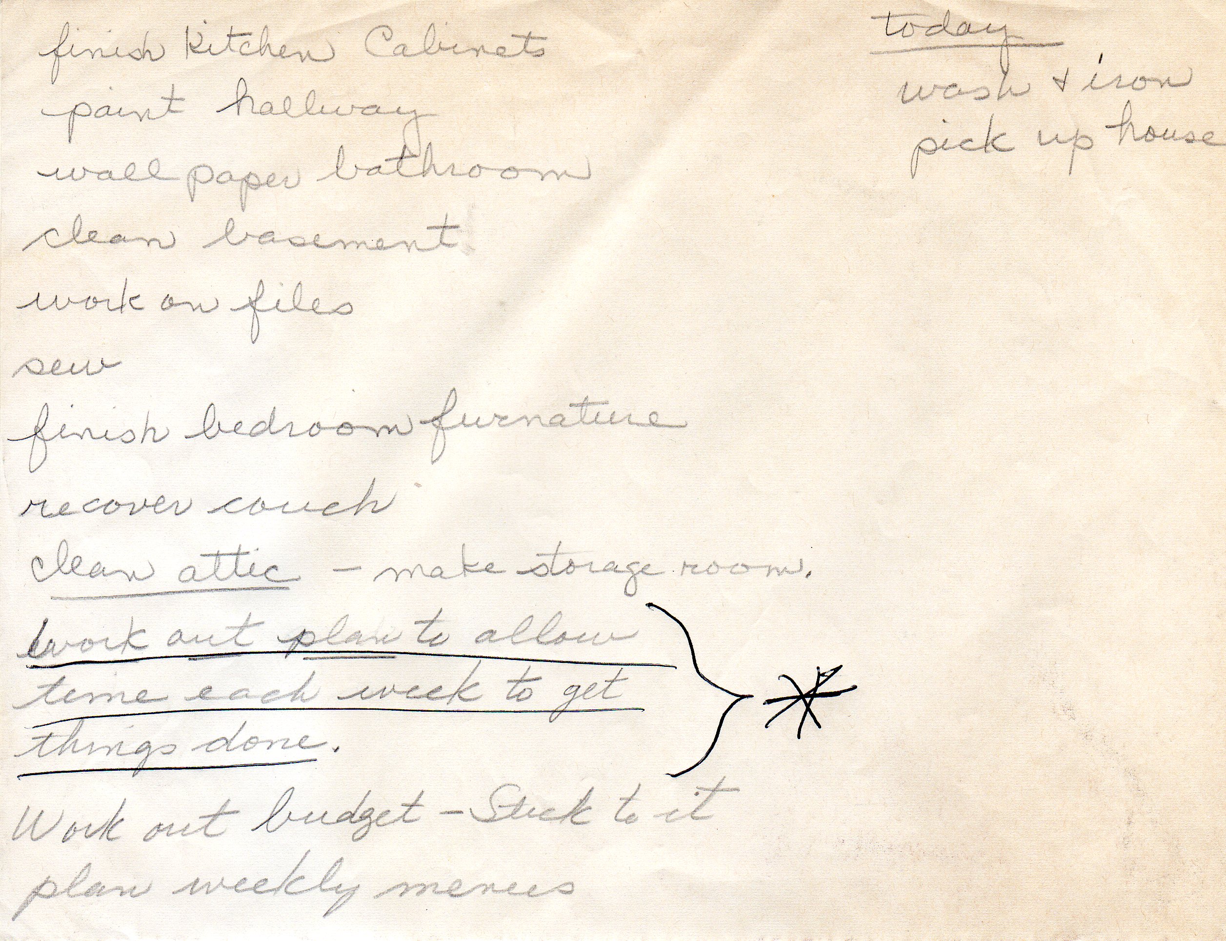 Declutter 2017: A list — undated December 31, 2017People, Series, Thingsdeclutter 2017, list, momDona Among my mother’s things were lists. Here’s one ((I could have written most of those items — they are often on my own lists — especially “Clean Attic.”)): Related