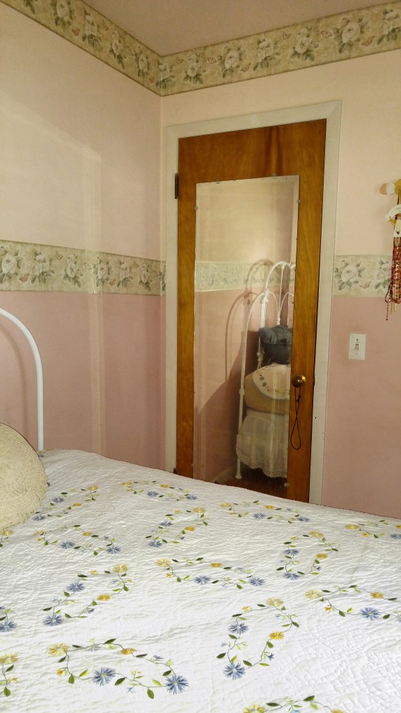She was not where I last saw her. I asked my mother where she went. What had she done with her? My mother heard me say, “Mom, what happened to the big mirror in your room? Did it break? Did you get rid of it?”
