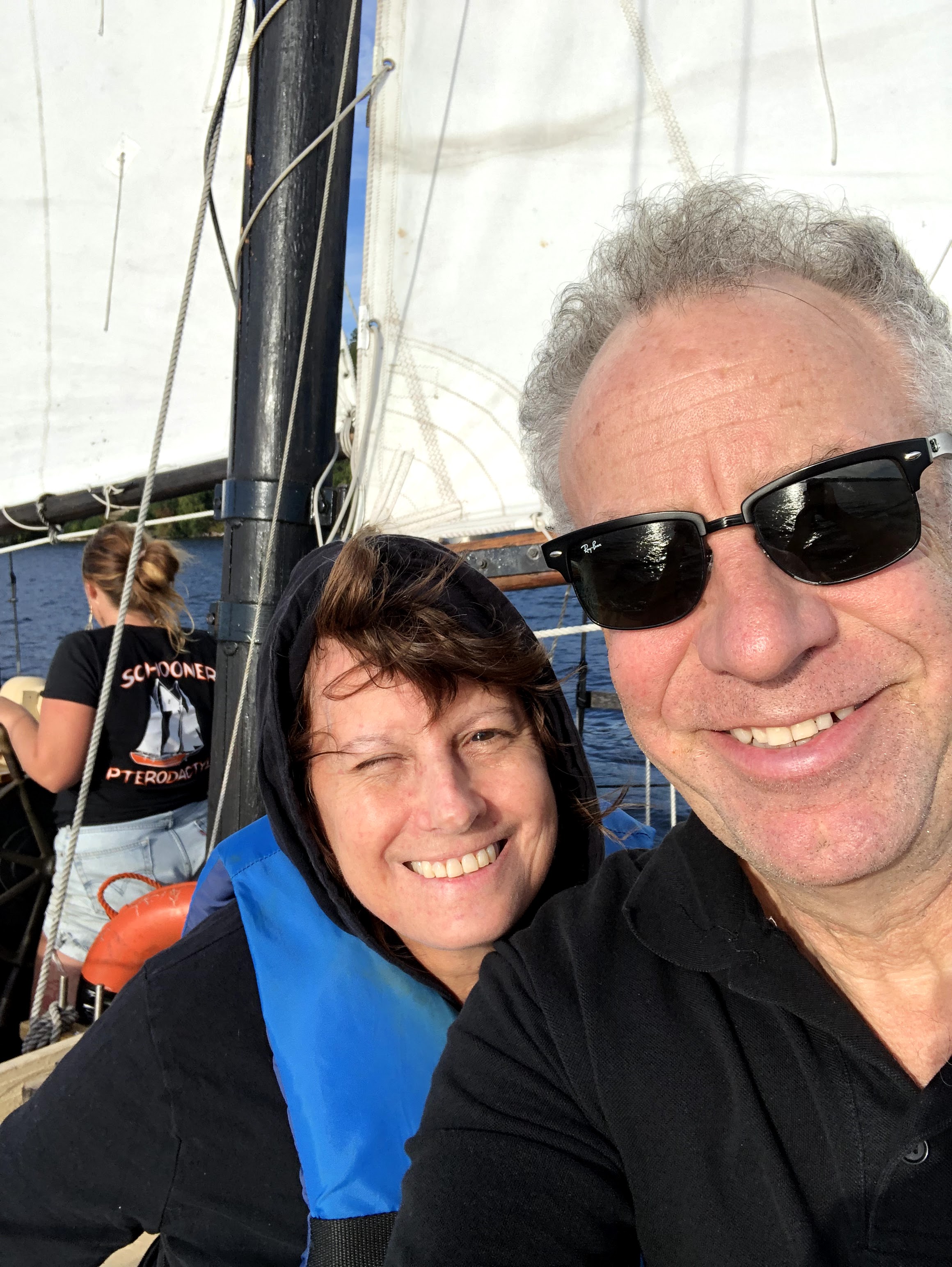 Our next delight was a 3-hour sailboat trip on the Schooner Pterodactyl that started at 4. Clare mentioned that she wanted to do it and we booked what turned out to be the last sail of the season. Clare invited three friends and we all brought goodies. It was beautiful, peaceful (except for when I was almost tossed overboard), and the food and conversation were delightful.