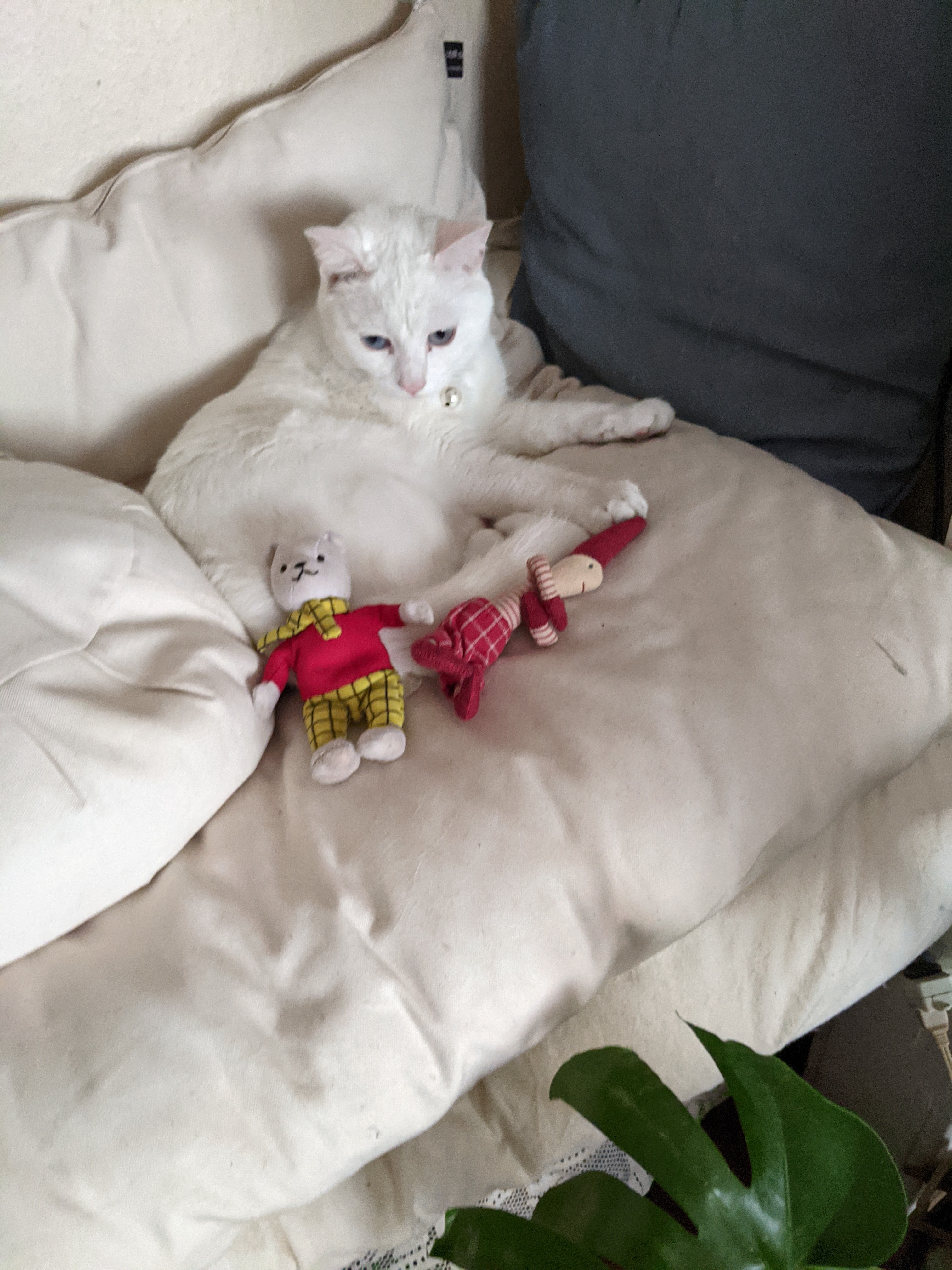 I finally met Clare’s cat, Milk (or Ghost depending on the day). It was delightful to meet him but I am not sure he found me delightful. I scolded him for scratching on the sofa and must have hurt his feelings because he didn’t warm up to me while we were there visiting yesterday. I’m here for two weeks, so perhaps I can win him over.