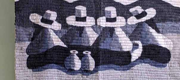 Today as I was tidying my attic study I came across a woven piece of art that our friends Sandy and Arieh gave us once after returning from a visit to Arieh’s home in Santiago, Chile. We kept meaning to hang it up, but never got around to it. We draped it over the back of a futon for a while, but various cat claws pulled out some fibers and thread. I’ve moved this piece of art from one storage area to another for the past decade or two and while I like it, I was tired of moving it.