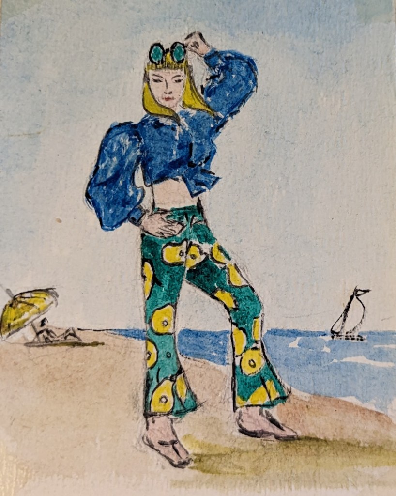 I don’t remember this assignment from The Famous Artists School. I’m sure she used magazine advertisements as the models. She did that a lot.