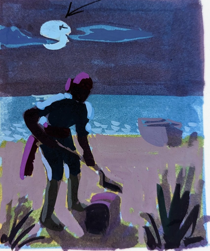 • Deeper values — cooler bluer colors — think of moon as a cool light source (arrow to moon)