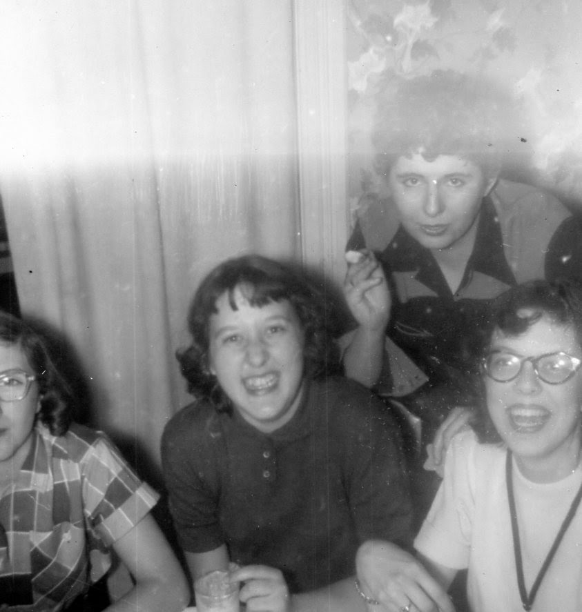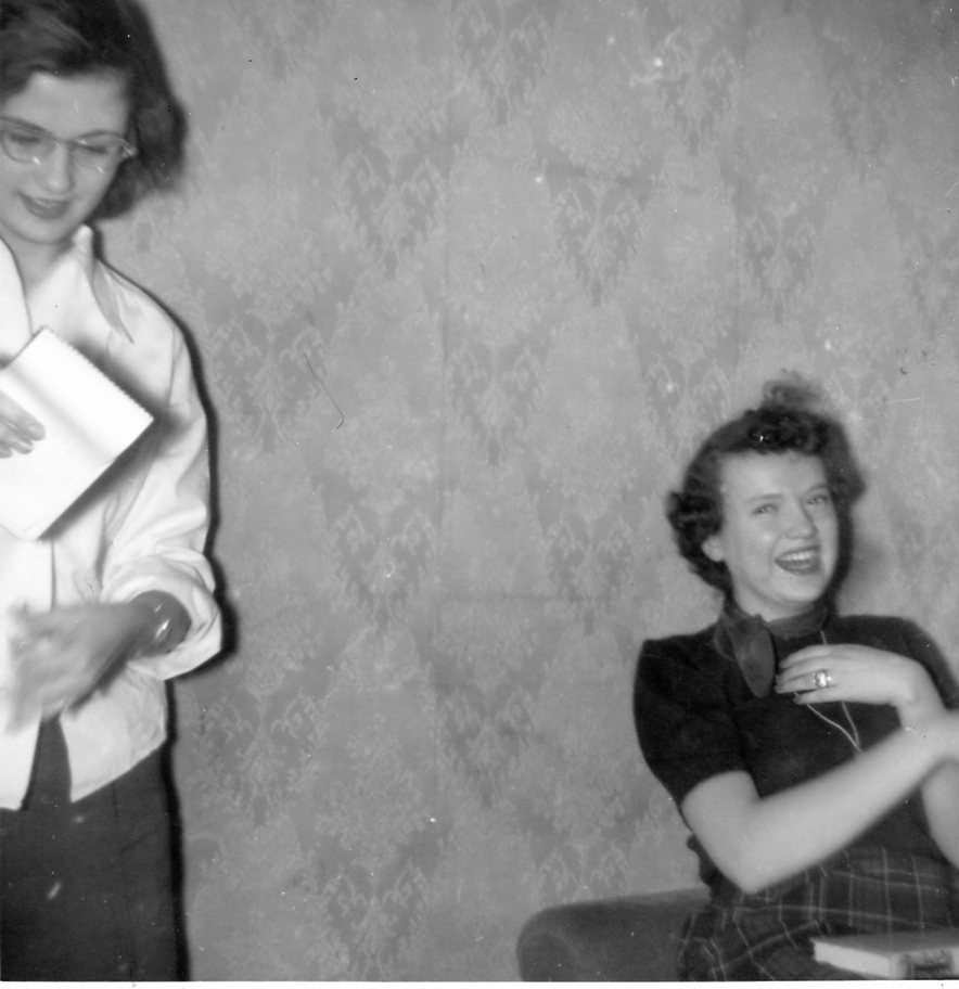 On March 26, 1953 several of Mom’s friends gathered to celebrate Patti’s birthday. They would have been juniors in high school and about 17 years old. It looks like they had fun — I’m thinking they were playing charades in some of the photos.