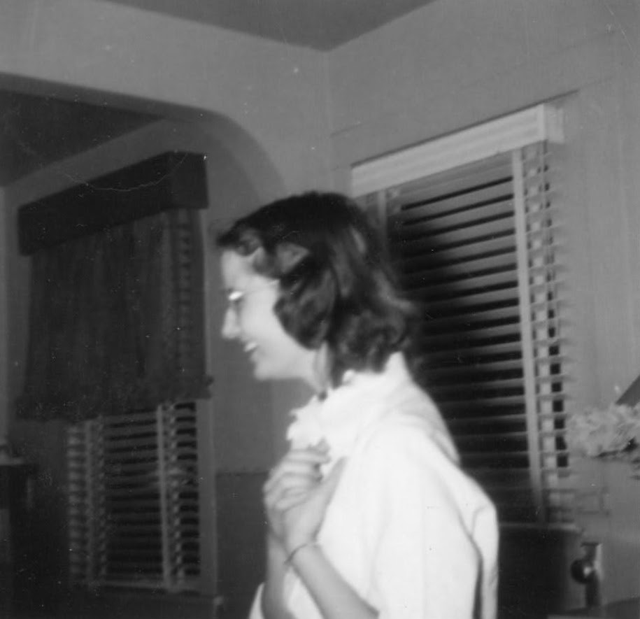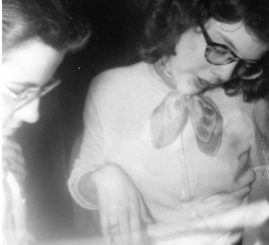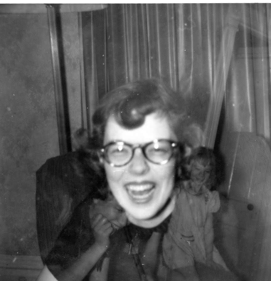 Oh wow! Now I can see that it is a double exposure! To Barbie’s left is my Aunt Ginny smiling at something. I don’t know the other person on the left.