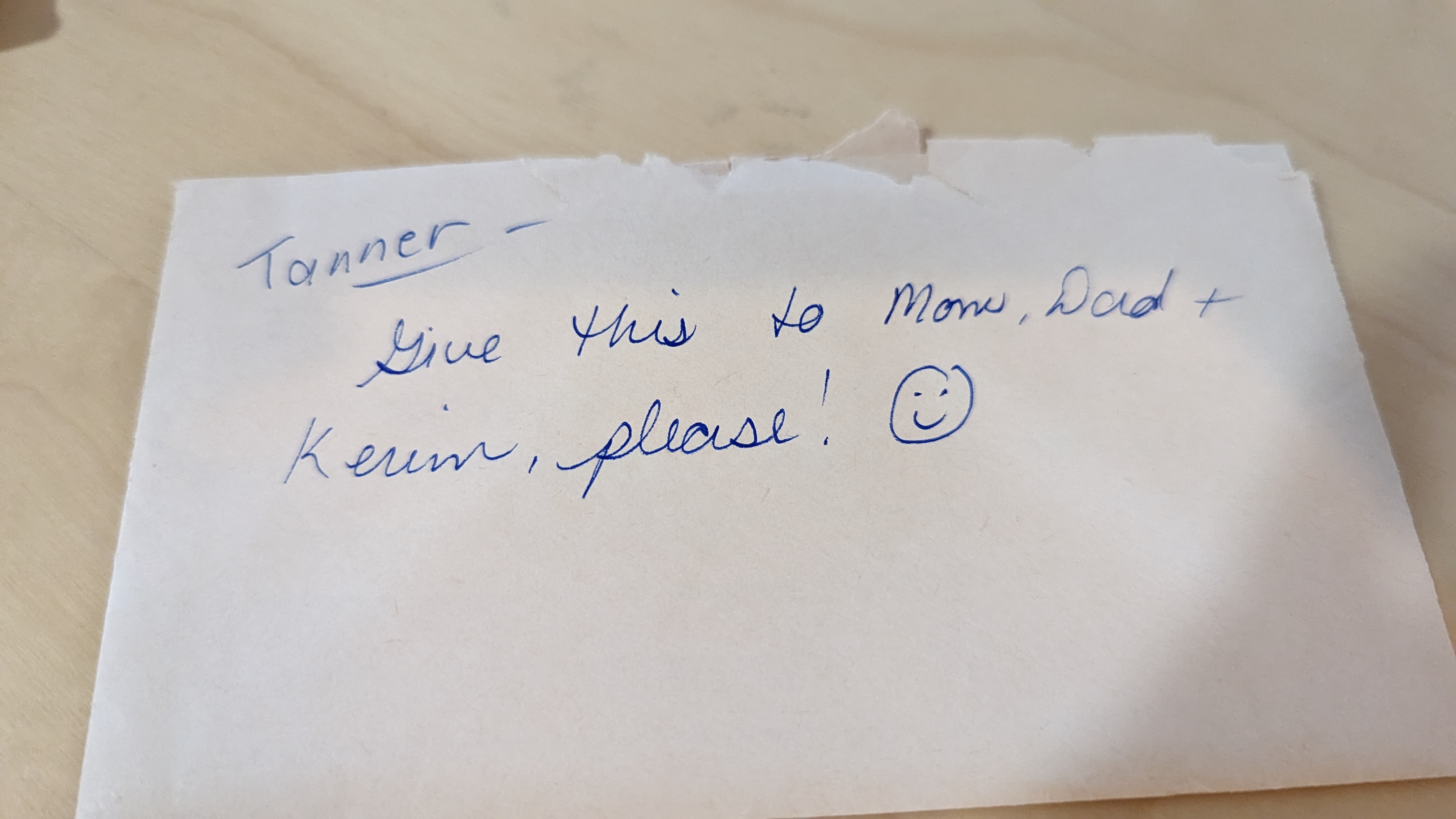 This letter was written two months after moving to Pittsburgh. I must have sent this with something else because the front of the envelope has no address or stamp — just a note to my brother’s dog, Tanner: “Tanner — Give this to Mom, Dad, and Kevin, Please! :-)”
