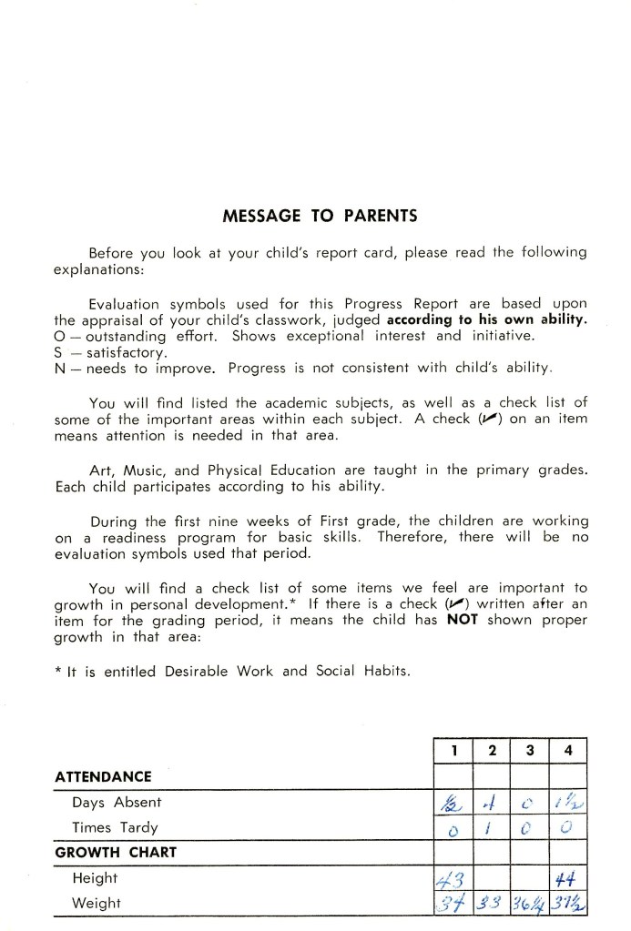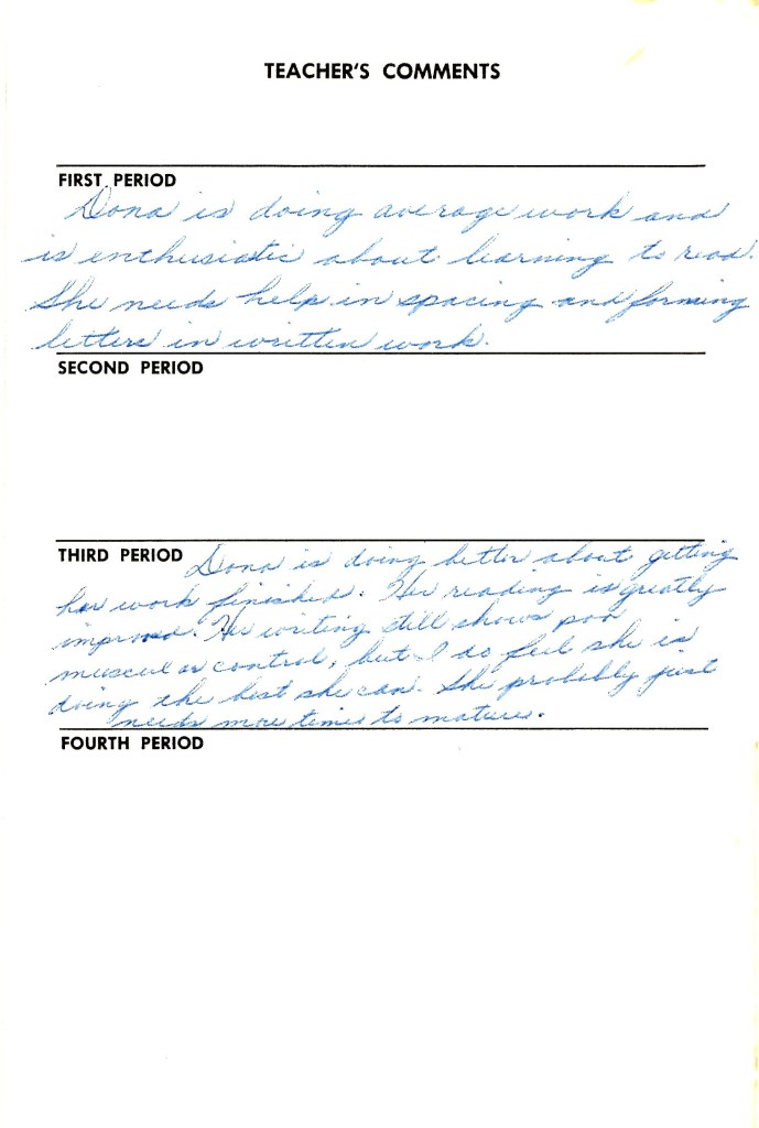 It looks like I went downhill after first grade — or perhaps they expected more out of me. Again my handwriting was bad — all those Ns.