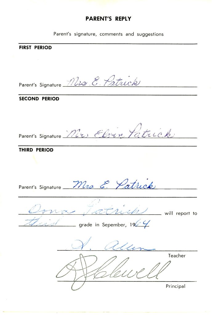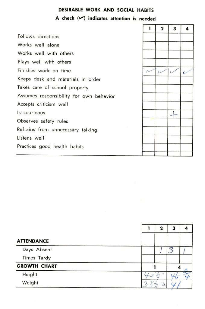 It looks like I went downhill after first grade — or perhaps they expected more out of me. Again my handwriting was bad — all those Ns.