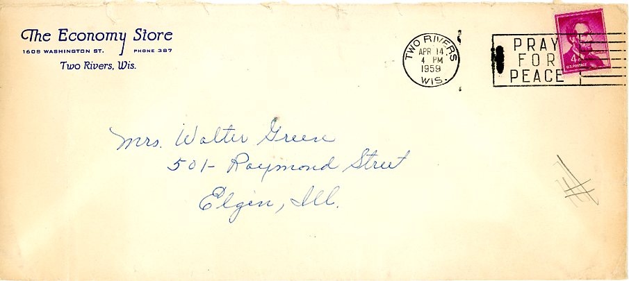 *Auntie Phyllis co-owned a store called The Economy Store in Two Rivers, Wisconsin for 8 years along with a Martha Gensman. The letter in this post was sent in an envelope with a return address of the store.