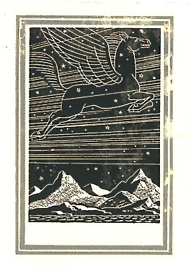 Rockwell Kent (June 21, 1882 – March 13, 1971), the artist behind the Pegasus book plates, was an American painter, printmaker, illustrator, writer, sailor, adventurer and voyager. [Wikipedia contributors. “Rockwell Kent.” Wikipedia, The Free Encyclopedia. Wikipedia, The Free Encyclopedia, 7 Apr. 2024. Web. 25 May. 2024.] He’s got a page at the National Gallery of Art website, but none of his works are on display.