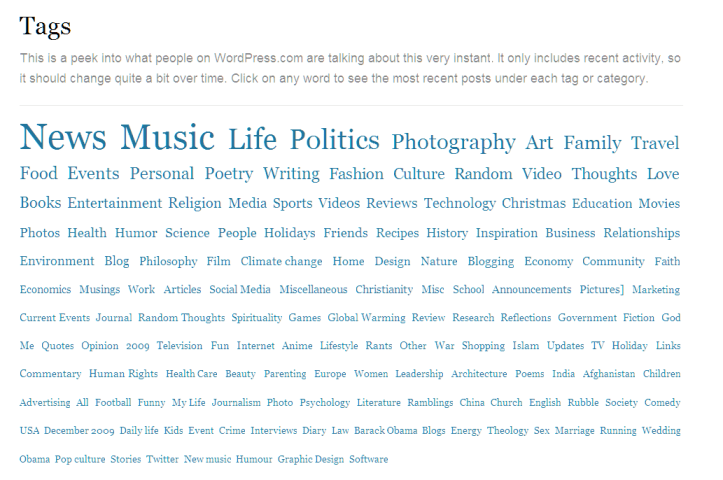 wordpress tags December 10, 2009Full resolution (1033 × 686) ← Previous Next → Screenshot of tags on wordpress.com