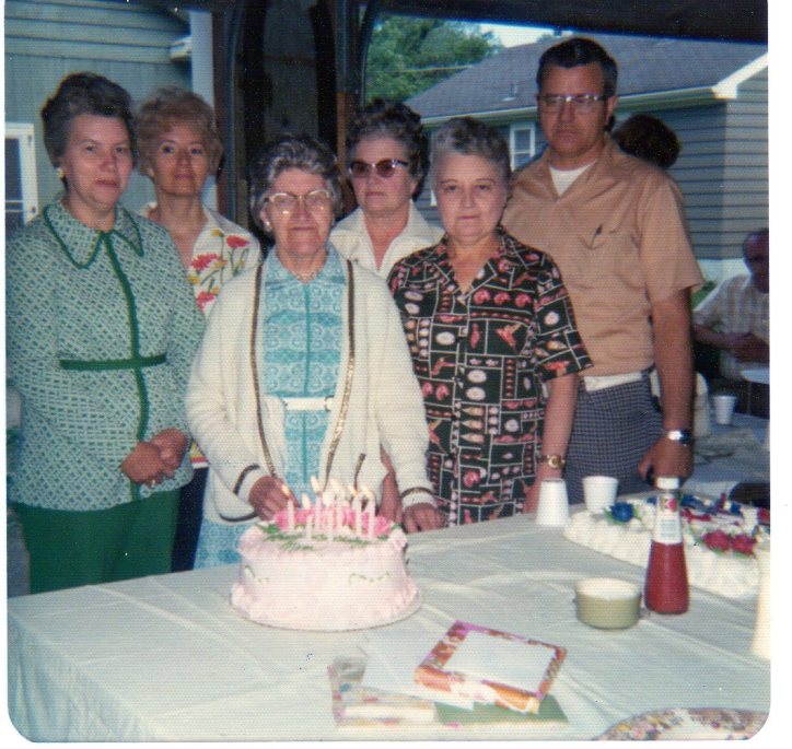 blog187 December 16, 2017Full resolution (1060 × 1004) ← Previous Next → My dad’s family: Aunt Norma, Aunt Corrine, Aunt Alvera, Dad and Aunt Leila behind Grandma Patrick on her 80th birthday