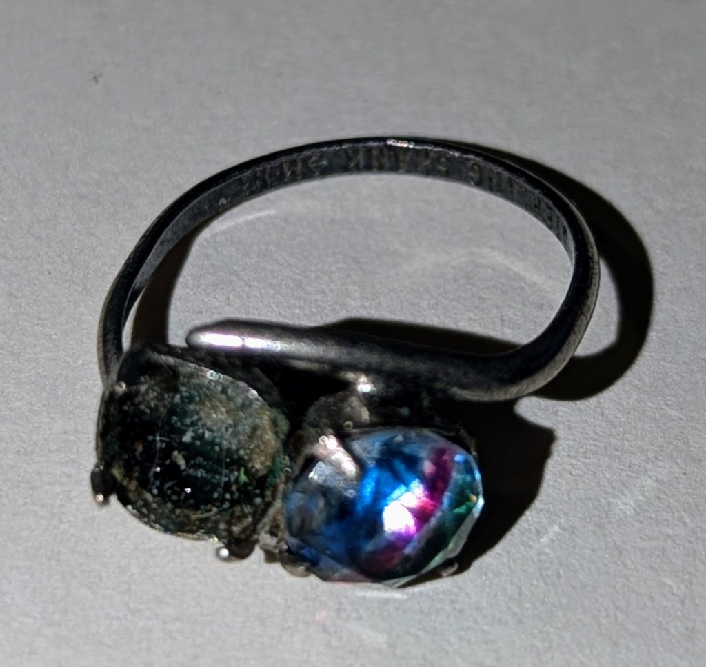 It’s been sitting on an antique secretary in our guest room for years and for years I have wondered who he was. At some point I accidently scratched a small hole in the backing and numbers appeared which intrigued me even further — maybe someone had written information about the man on the back of the photo. I planned, some day, to remove the backing to see what was written there, but doing that involved pulling back dozens of sharp bits of metal so I put it off indefinitely.