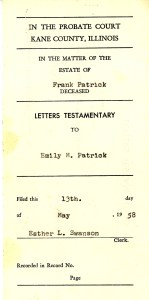 One is a probate document which I’ll probably put with my genealogy stuff since it gives Grandpa Patrick’s date of death.