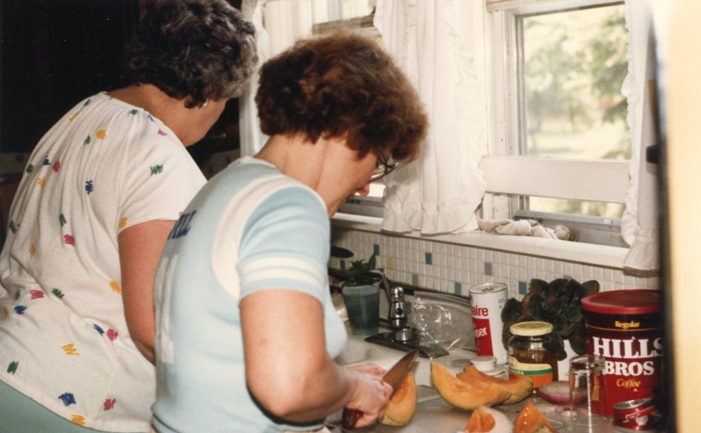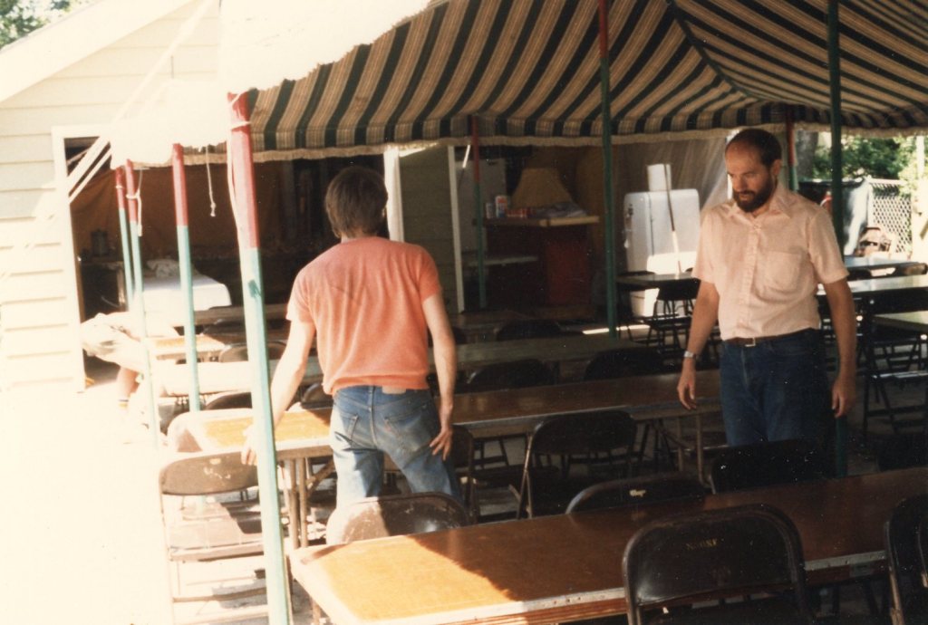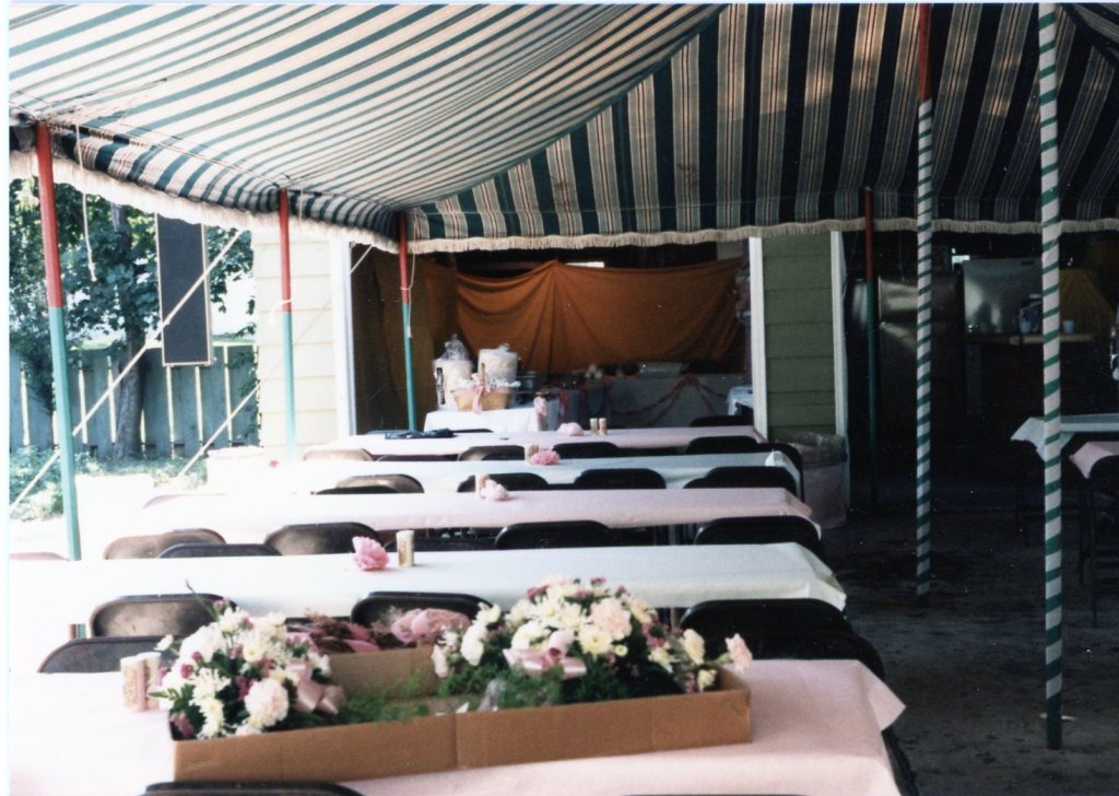 Dean and I got married at a small church outside Elgin. Then we had a picnic reception in my parents’ back yard. Here are some of the preparations. This must have been the day before the wedding.