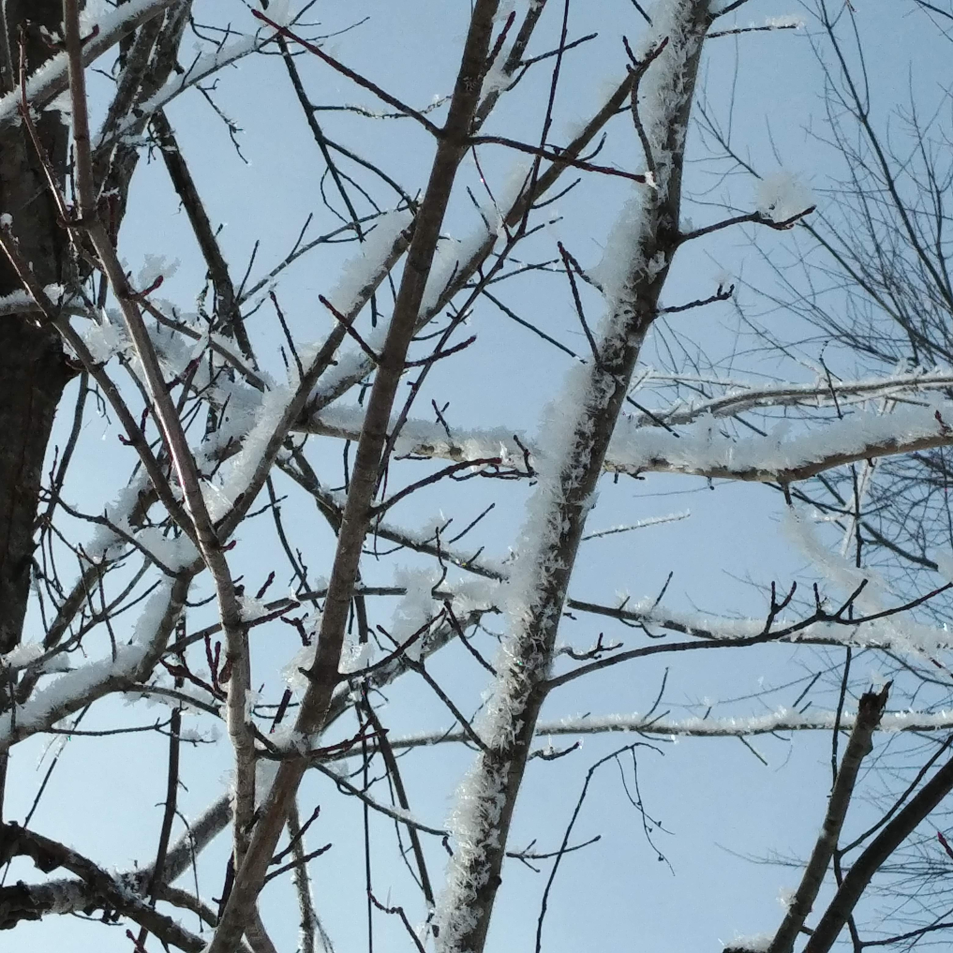 One morning, during our annual Christmas visit to Illinois in the late 1980s, we awoke to trees covered in feathery crystals — a true winter wonderland. We exclaimed at the beauty and made plans to take photographs of the frost. We wondered what this was — we’d never seen Jack Frost’s work quite as lovely as this. Then Dad, matter-of-factly said, “Hoar frost.”